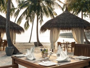 сервис очень плохой в номере не пополняли кофе и сахар, вся уборка заключалась только в заправки постели и смена полотенец. бумажка пролежала на видном месте от начала и до конца поездки(упавший билетик) официант из ресторана предлагал кофе через раз(давали чаевые по 5 $) без денег они вообще не шевелились вообщем если убрать слово Мальдивы из отеля, то максимум ему 3+ звёзды