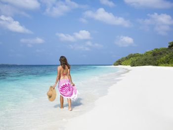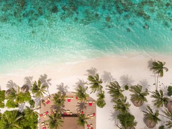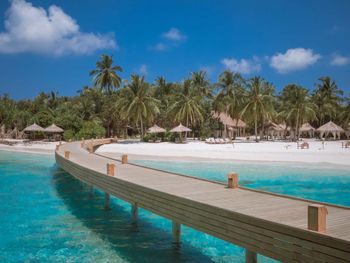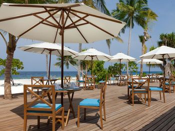 Хороший песчаный пляж вокруг острова. Так как на острове есть гарден виллы, очень важно наличие лежаков и зонтиков на общих пляжах, каковых несколько по всему острову. Обувь не нужна! Все и везде ходят босиком, в том числе в ресторанах. Неплохие рестораны à la carte,( их несколько ), особенно вегетарианский. Адекватные цены на водные экскурсии. Очень удобно: ежедневный снорклинг с гидом на домашнем рифе.