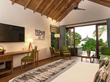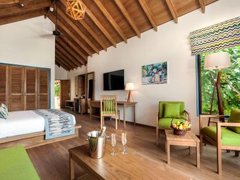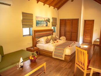 Просторная вилла, большая кровать, удобный матрас и подушки. На ресепш есть русскоговорящая девушка Ася, огромная благодарность ей за помощь в решении всех проблем, связанных с пребыванием в этом отеле. Также хочу передать огромную благодарность менеджеру Sanjay Kumar за его помощь и профессионализм. Снорклинг неплохой, есть на что посмотреть.