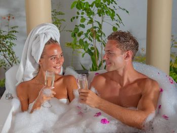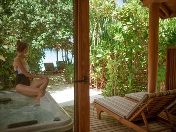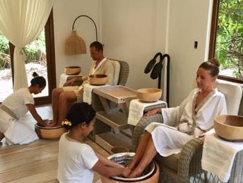 Проживали сначала в вилле сад, затем в ватер вилле. У виллы сад ближе выход к местам для снорклинга, и она более уединенная, вокруг летают летучие собаки и много курочек. Ватер виллы расположены в самом лучшем месте для купания, здесь самая прозрачная вода и нет волн. Маленькие акулы плавают прямо рядом с берегом. На всех виллах есть тропический душ под открытым небом. Мебель деревянная, на стенах интересные картины. Остров можно обойти по береговой линии минут за 20, много красивых мест для фото - различные качели, инфинити бассейн. Огромное количество цветных рыб, несколько раз видели 2 м рифовую акулу. Большой выбор водных развлечений, дайвинг, снорклинг, экскурсии. Питание было полупансион, его хватило более чем. Еда невероятно вкусная и большой выбор. Особенно понравились салаты и их разнообразие. На человека бесплатно 1 литр воды в день. Уборка 2 раза в день. Персонал и обслуживание выше всех похвал