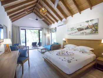 ЖУТКОЕ МЕСТО.....не очень хотел тратить время на обширный отзыв, но обстоятельсва того требуют....Ну первое и главное для людей которые не любят читать - этот отель к Мальдивам не имеет никого отношения за исключением геогрофического положения, предназначен для людей которым очень хочется побывать на Мальдивах , НО нет достаточно средств, Боже вас спаси потратить на ЭТО ваши деньги и главное время. Теперь по порядку, ну первое - прилет, естественно в аэропорту никто не встретил!!!!, в результате добирались еще 5 часов, но как потом выяснили это была импровизация сотрудников отеля которые решили сделать комбинированную доставку доместиком и лодкой. Самое главное - это РИФ, ОН МЕРТВ , причем давно , далее наверно можно не продолжать, с тем же успехом вы можете купаться в бассеине с морской водой в любой точке мира...))) кстати сразу и о бассеине - это довольно обширная цементная яма, с грязноватой водой, находящаяся метрах 500 от от вотер вилла, так что если соберетесь сходить - как раз согреетесь))) Данный отель вообще совершенно бессистемно построен так как его строили частями с большими интервалами и в разное время ,и он как лоскутное одеяло... ПИТАНИЕ - таинство происходит в столовой качество продуктов и приготовления - чудовищное,как иллюстрация ужаса - то первое что я увидел попав туда , это очередь - ВНИМАНИЕ - за шаурмой!!!! спросите себя когда вы последний раз ели ну или слышали о шаурме)))) Пища очень острая практически вся, так что имейте ввиду, питьевую воду пытаются выдавать в стеклянных многоразовых бутылках, естественно из местного опреснителя, после скандала начали давать в пластике и закрытые))) Купить нормальную воду или другие продукты невозможно - нет магазина, в платных баре и так назывваемых ресторанах все тоже самое....стейки и тунец , по 75 US за штуку имейте ввиду ))) УБОРКА - только через скандал с менеджером, иначе белье и полотенца аккуратно просто сложат красиво без замены))) НУ итд ....больше Букинг места писать не дает))) Всем уда