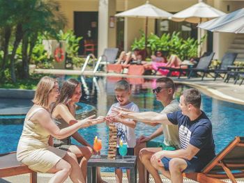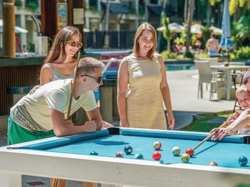 Soak up the sun in our lagoon swimming pool as the little ones enjoy themselves in the kid’s pool with a great waterslide. Join in all the fun with our daytime and evening activities at Siam Adventure Club. Try one of our three restaurants offering an authentic Thai dining experience or catch a live game at Champions Sports Bar showing sports from around the World offering a whole variety of international favorites.