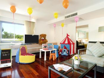 Очень уютный отель, большой теплый бассейн, игровая зона для детей, фитнес зал, наличие горки, детский бассейн, вкусные завтраки, большие просторные номера, по всему периметру люкса лоджия большая, всегда в номере есть питьевая вода в бутылках, возможность заказать борщ (русская кухня), выдают зонты во время дождя, полотенца для бассейна и пляжа, зеленая территория, свободно можно пригласить гостей. Есть сейф, постельное белье накрахмаленное, меняют каждый день, телевизор большой в гостиной.