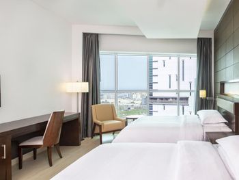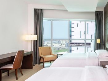 Почувствуйте себя знаменитостью благодаря великолепному сервису в Four Points by Sheraton SharjahМы работаем над переводом этого описания на ваш язык. Приносим извинения за неудобства.Located in Sharjah, 2.6 km from Corniche Beach, 3.3 km to Al Majaz waterfront. Four Points by Sheraton Sharjah provides accommodation with a restaurants and cafe, free private parking, an outdoor swimming pools for adults and kids and two fitness centers for gents and ladies, Jacuzzi and sauna rooms. With free WiFi, this 5-star hotel has a terrace and a garden. The hotel features a 24-hour front desk, room service and currency exchange for guests.