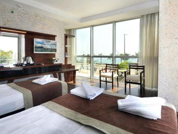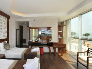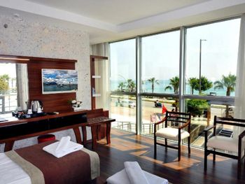 Uk Blue Coast Hotel — это отель с 4 звездами на первой линии города Аланья. В распоряжении гостей сезонный открытый бассейн, фитнес-центр и общий лаундж. Этот вариант размещения располагается в 1,5 км и 2,3 км соответственно от таких достопримечательностей, как Общественный пляж Аланьи и Пляж Кестель. Пляж Портакал — в 3 км. К услугам гостей отеля — терраса, ресторан и бар. Из окон открывается вид на город.