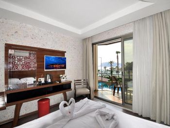 Хороший отель у моря. Питание было ок. Была в основном курица на обед или ужин и много овощей, что мы с подругой в принципе любим. Отель через дорогу от моря. За те деньги, что мы заплатили за все включено, это того стоило. У бассейна всегда были шезлонги и зонты. Обслуживающий персонал работал отлично. Что на ресепшене, что в баре или столовой. Мустафа в столовой был очень дружелюбен и помогал во всем На ресепшене русскоговорящая девушка Виктория(если не изменяет память на имя) тоже помогала во всех случаях. Остальных имен я не помню, но все работали по полной! молодцы