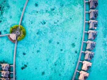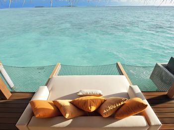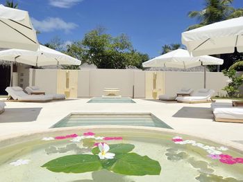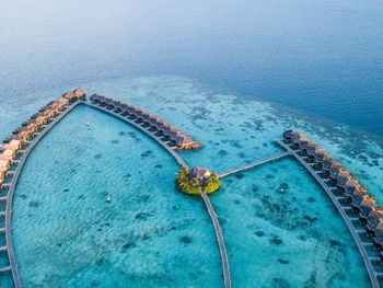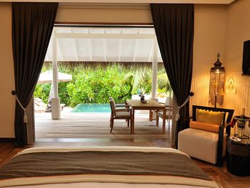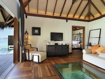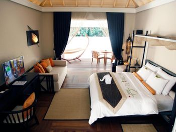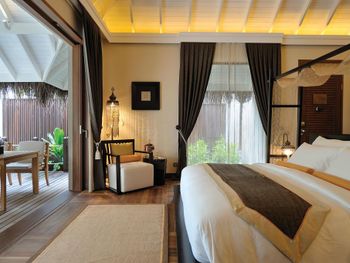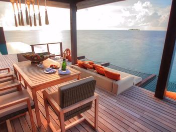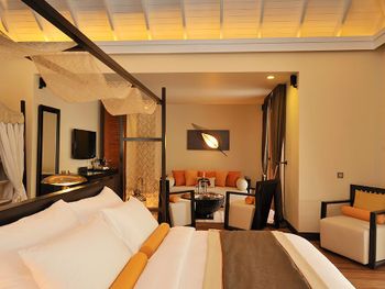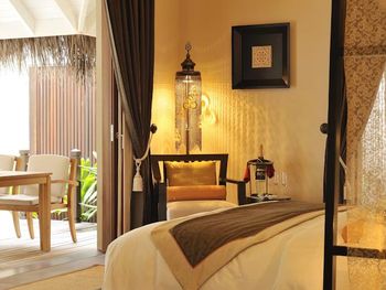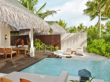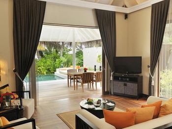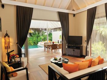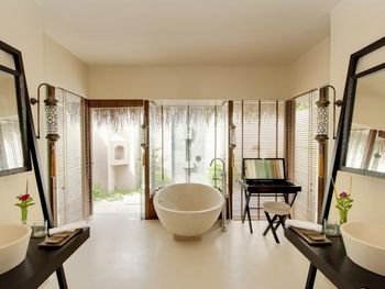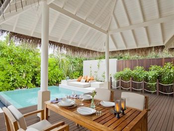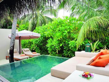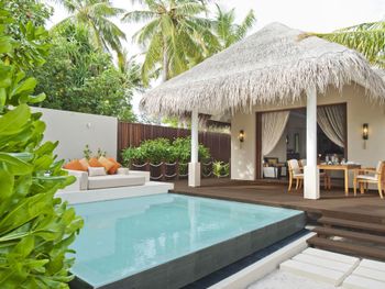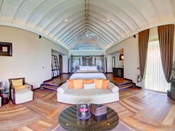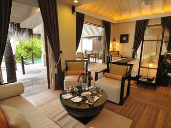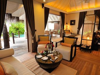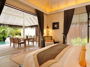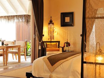 Виллы оформлены в элегантном стиле с элементами ближневосточного и мальдивского дизайна. Пляжные виллы и люксы расположены всего в нескольких шагах от пляжа и выходят в собственный уединенный сад с бассейном и душем на открытом воздухе. На виллах и в люксах над водой также имеется собственный бассейн и душ на открытом воздухе, а из окон открывается потрясающий вид на бескрайний океан.