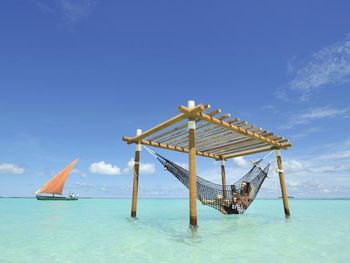 Очень сложно добираться до резорта... Сначала полтора часа на самолёте, затем ещё почти час на лодке. Очень непонятная система все включено. Регулярно травят насекомых именно в тот момент когда идёшь на ужин(( есть ещё небольшие недочёты, но это потому в сравнении с другими резортами здесь не хватает)