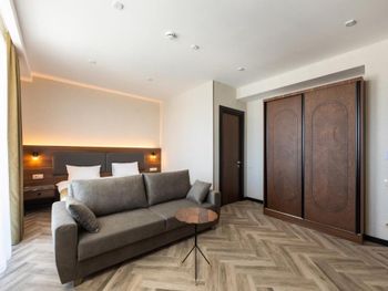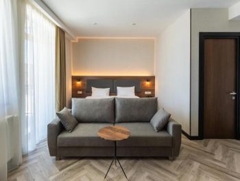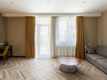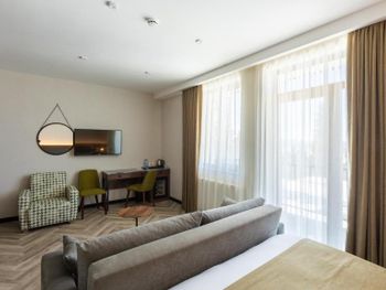 Приятный отель, находящийся вдали от дороги. Все удобства в номере. У каждого номера свой балкон. Отличный завтрак шведского стола. Не понравилось, что плохая звукоизоляция, было слышны все шаги за дверью. И не понравилась локация, весь основные канатки находится в Дидвели, пешком от отеля очень далеко, ездили на такси. Хотя выбирали специально поближе к канатке, чтобы можно было пешком ходить. В общем, впечатление об отеле сложилось хорошее.