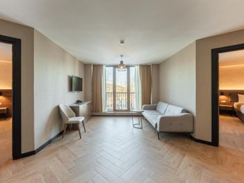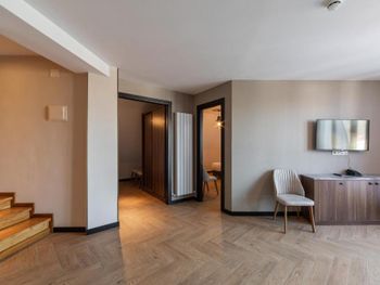 Номер не соответствовал заявленному перечню услуг и удобств (фен был в ванной только на первом этаже, микроволновой печи не было, звукоизоляция отсутствует напрочь, кухонные пренадлежности отсутствовали, Обеденный стол отстутсвовал, балкон представлял из себя 20 см мраморного отступа (указанная мебель на улице туда бы никак не поместилась), вид из окна только на внутренний дворик (хотя отдельно указан вид на горы), Но самое невыносимое- это постоянный запах канализации из туалета, который распространялся на все 150 м2 номера и находится в номере было просто невыносимо. На просьбу переселить нас нам отказали.