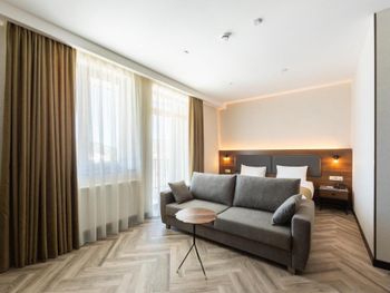 Все понравилось. Приветливый персонал, чисто, уютно, номер большой. Вернувшись вечером обнаружили в номере боьшую нарезку из свежих фруктов. Завтрак хороший. Обычно мы не ужинаем в ресторанне при гостиницах, но здесь было все на высоте и цены адекватные. Расположение очень хорошее. Тихо и лес рядом. Рекомендую!