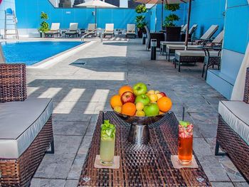 Номер в отеле староват, телевизор не работал, слив канализационный забит. Вида с окна совсем нет. Бассейн маленький.