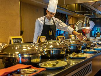 Единственное из за того, что в Отеле не всегда хорошая загруженность в ресторане, иногда вместо шведского стола, еда по меню. В таком случае выбор кратно сужается, но даже мой привередливый сын, который не ест буквально половину продуктов питания, смог найти себе что-то по вкусу.