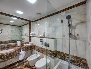 Просторные номера отеля оснащены телевизорами с плоским экраном и кондиционерами. В номерах отеля Sharjah Palace оборудованы собственные ванные комнаты с фенами.