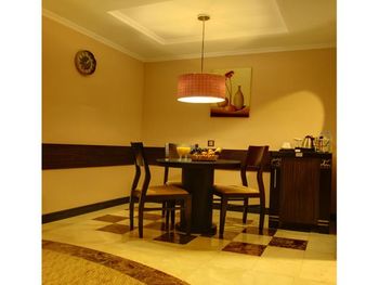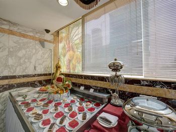 В ресторане отеля Sharjah Palace сервируют разнообразный «шведский стол» с блюдами европейской, китайской, арабской, индийской и дальневосточной кухни. Здесь же подают стейки и морепродукты. В лаундже La Fontana вам предложат кофе и другие горячие напитки.