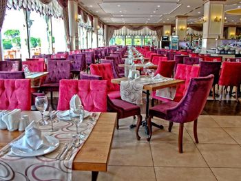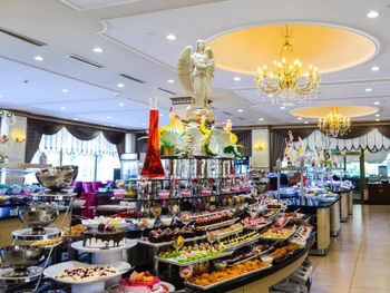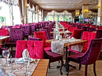 Сервис просто ужас. Основной ресторан- это столовая где кишат люди и мухи, персонала не хватает, столы грязные убирать не кому,стулья-кресла из бархата в жутких вековых пятнах и крошках. Алкоголь весь непонятно где произведен ( кроме вина и пива- это было норм!) В 2018 году были в этом отеле и в этот приезд просто не поняли, как так быстро можно было все испортить.