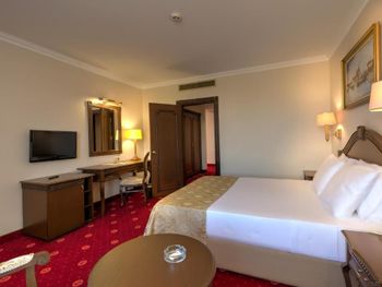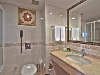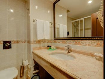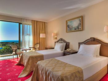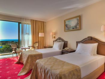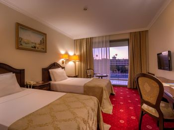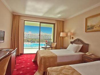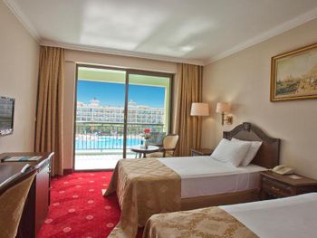 Забронированный трёхместный номер на троих взрослых на деле оказался двухместным с дополнительной кроватью - раскладушкой для ребёнка. На другой так и не поменяли, заявили, что других номеров не бывает. Спорить было бесполезно. Номера и мебель несколько уставшие для заявленных 5 звёзд. Месторасположение отеля очень неудачное, до Анталии далеко и дорого. Вокруг ничего нет, кроме отелей. Второй раз не вернулась бы туда, на мой взгляд, цена завышена