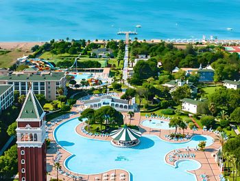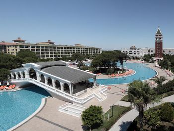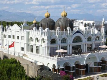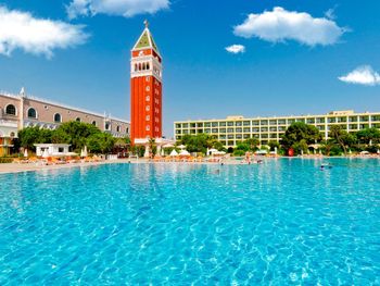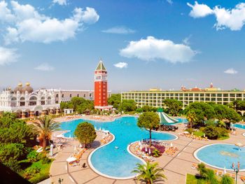 Пятизвездочный курортный отель Venezia Palace Deluxe, спроектированный в виде площади Сан-Марко в Венеции, занимает территорию в 100 000 кв.м. и находится в нескольких минутах ходьбы от собственного пляжа в районе Кунду, в Анталье. К услугам гостей огромный открытый бассейн, крытый бассейн, роскошный сад и просторный спа-центр.