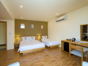 Номер в отеле нам понравился, особенно столик у окна с видом на город и море. В номере всегда было чисто. Очень близко от центра города. Персонал решал все наши вопросы. Помогли нам оставить на 2 дня наш багаж, пока мы ездили в маленькое путешествие в Тяудок. Помогли с арендой байка.