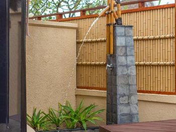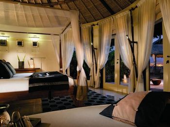 Ооочень старый отель! Устарел морально и физически и уже давно. Мы были уверены в марке Banyan Tree, поэтому то, что увидели здесь, было полной неожиданностью. Во-первых, сама конструкция виллы: трудно представить более бездарно спланированное пространство! Такое впечатление, что виллу поставили задом наперед. На входе расположился крошечный бассейн и санузел. Наша вилла стояла так, что унитаз отлично просматривался из офисного здания напротив. Наверное, нас никто не рассматривал специально, но чувство не из приятных, прямо скажем. Двери там нет. Хоть бы кусты какие-нибудь посадили. Сама вилла в форме раковины, поэтому комната (спальня) круглая и очень тесная (как они насчитали там 110м2?!). В центре - кровать. Куда бы вы ни шли, она оказывается на дороге. Это жесть! Написано, что это номер на троих. Не представляю даже, где там можно разместить еще одного человека. Правда есть кушетка, но она неправильной формы (в месте расширения раковины), не уверена, что там можно обустроить комфортное спальное место. Но самое интересное, что другая, диаметрально противоположная дверь из комнаты ведет к пляжу. Вроде бы чудесно: вышел из домика, нырнул в морскую лазурь... Однако потом нужно бы смыть с себя соль. Вот здесь вас ожидает подстава: душ-то находится в санузле, чтобы попасть в который нужно мокрому и распаренному пройти через всю кондиционированную виллу, обойти долбаную кровать и потом так же вернуться обратно. Кстати, душа там два. Непонятно, почему не вынести один из них на другую сторону виллы, к пляжу. Уборка номера ужасная, хоть и дважды в день. Фактически это просто замена полотенец и застилание постели.