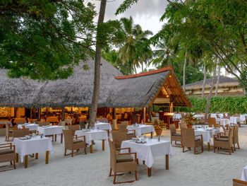 Баньян Три на Мальдивах - пятый отель данной сети, в котором мы отдыхали. Для всех желающих сюда приехать есть шикарный океан, солнце и песок! Но если Вы хотите морепродуктов и экзотических фруктов, то ехать в этот отель не стоит. Самая отвратительная кухня за 15 лет наших путешествий! Из морепродуктов ежедневно есть только морская капуста (не всегда свежая!). Обеды и ужины а-ля карт - не поддаются описанию! В любом придорожном кафе России более разнообразное меню и более красивая подача блюд! А ведь мы отдыхали в праздничные дни Католического Рождества и Нового Года! Что ждет гостей в единственном ресторане в обычное время нетрудно представить. Цены на отель были заоблачными, но зная данную сеть, денег не пожалели, надеялись на отличный отдых! Разочарованию не было предела!