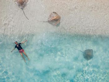 Хорошее месторасположение, вкусная еда, отличное обслуживание. Кормление скатов в 16.45. Увидели осьминогов, кальмаров, черепах, 1,5  метровых рифовых акул. Со стороны примерно 35-40 виллы в углублении в море постоянно жила большая стая крупных рыб.