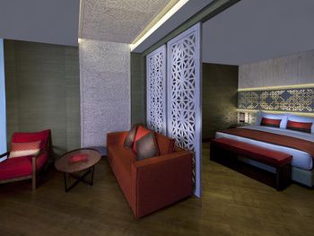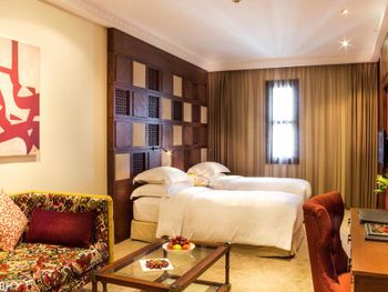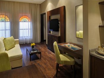 All rooms at the Souq Waqif Boutique Hotels feature fresh and contemporary interior. Each room includes a flat-screen TV, a seating area and a desk.