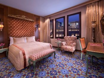 Доброжелательность персонала, готовность решить вопросы гостя. Размер номера, интересное месторасположение.