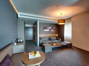 Нам бесплатно повысили категорию, в номере помимо двухместной большой кровати, был диван, зона отдыха с ТВ.