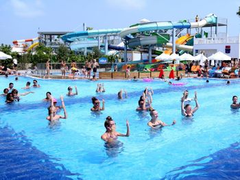 Отель очень понравился, еда вкусная и разнообразная каждый день можно кушать что то новое, есть бассейн с горками, до моря 5 минут пешком так же ездит трансфер с 9 до 18, каждый вечер шоу программа. Интерьер в номере тоже красивый но ремонт бы не помешал. Отличное соотношение цена-качество