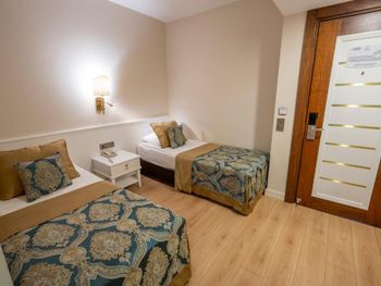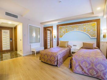 Отель не новый, но все есть. Просторный чистый номер с большим балконом, очень комфортные кровати, малышу предоставили детскую кроватку-манеж, в минибаре безалкогольные напитки в стекле. Бесплатная сауна (две парные и хамам) которой можно воспользоваться 19.00. Амфитеатр и детская площадка находятся на пляже чуть дальше от отеля, что создаёт комфортные условия для отдыха в номере.