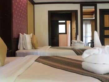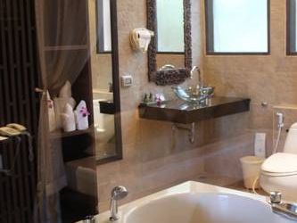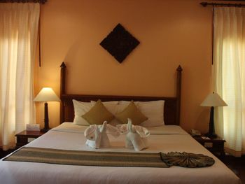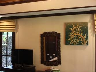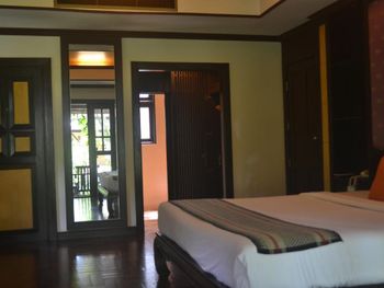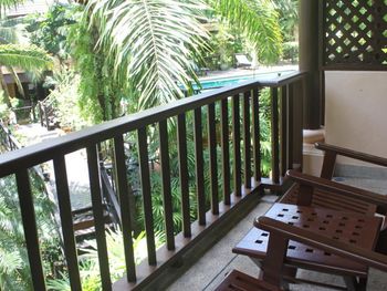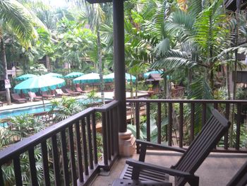 Особо про номера де-люкс: достаточно просторные, хороший балкон, разве что в дождливый сезон может быть темновато-сыровато на первом этаже (но мы жили на втором). Номер очень симпатично декорирован в тайском стиле, и шикарные паркетные полы, по которым очень приятно шлепать босыми ногами. Еще писали про открытую душевую - это не так, все там закрыто, сама душевая отделена от основного санузла стеклянной стенкой, интересно декорирована натуральным камнем, есть только небольшое открытое оконце наружу, затянутое москитной сеткой. Там, где вы будете стоять под душем - там все под крышей.