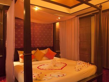 Rooms at Khaolak Palm Beach are situated within wooden Thai-style villas set on a hillside facing the Andaman Sea.