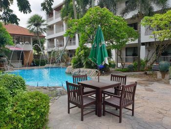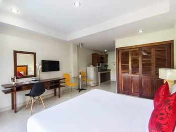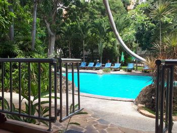 Неплохой бассейн. Кухонная зона в номере. Отличное месторасположение при наличии арендованной машины - очень быстро можно выбраться в любую часть города, выезд в четыре направления. Рядом FamilyMart, 7-Eleven, аптеки и заправочная станция, если берёте в аренду байк или автомобиль.