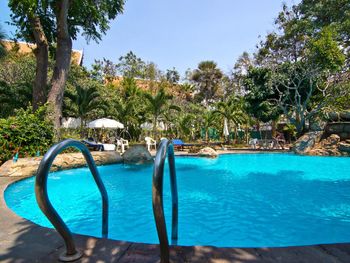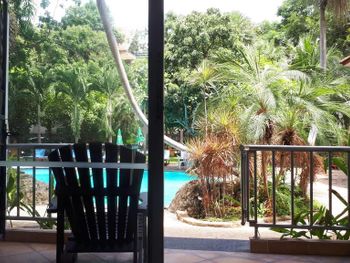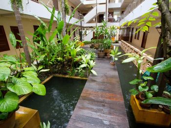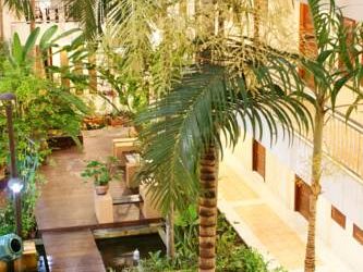 Наличие пальм посреди отеля и несколько дружелюбных карпов.