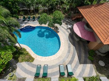 Белла вилла сконструирована очень интересно посредине крыши нет и гигантские пальмы и растительность уходит прямо в небо) прудик с карпами- милое место, возвращаемся каждый раз как домой( или на дачу))