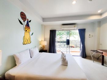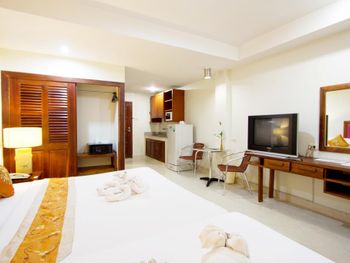 Просторный номер, есть кухня, стол и стулья, постельное белье белоснежное, есть туалетные принадлежности, не далеко от тц терминал 21, тихо, спокойно