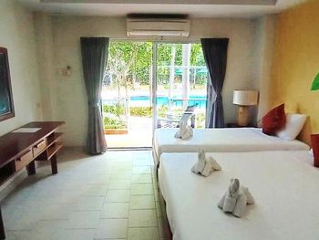 стандартный номер, кровать жесткая, но, насколько поняла, это стандарт, т.к. в остальных 5-ти локациях, где мы были, матрас был такой же. в номере полотенца, 2 бут воды ежедневно, полотенца/гель д/душа/туал бумага. завтраки не брали. очень расстроило, что в отеле не нашлось утюга( расположение не понравилось. рассчитывали, что до/от дельфинов будем ездит на тук-туках, но за все 10 дней ни одного тука не смогли остановить ни в сторону отеля, ни обратно(. если что, в Тае не первый раз и туками пользоваться умеем))) пешком порядка 15 мин до дельфинов по жаре довольно тяжело. рядом 7/11, буфет ninja. в 10 мин есть lotus.