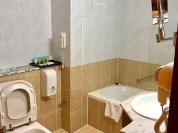 Черт меня дёрнул забронировать этот отель на 4 дня, думала на пляже, свои лежаки и т.д. Но, люди, как могут в богатых Эмиратах оставаться такие отели??? Я знала, что отель старый, но...ковролин в коридорах ужасно грязный, в номерах не лучше. Сантехника старая, кран чуть не вываливался. Шумоизоляции вообще никакой, щели под дверьми, кто-то курил в своем номере, а я ночью проснулась от дыма в нашем. Тюль грязная, пыльная, неужели нельзя постирать! На балкон(у нас был вид на город, в номерах с видом на море балконов нет) выходить только в обуви, так как не мыли его, наверное, никогда. Перила все в пыли и грязи! Пульт от телевизора не работал, половина лампочек в номере тоже. Постельное белье в дырках. Кровать, основа, оббита материалом, тоже рванье. Завтрак сносный, но посуда вся пластиковая, одноразовая, вилки и ложки тоже. Овсянка жидкая, как молоко. Яйца только вареные, никто вам ничего не пожарит. Море мелкое в Аджмане, но это не минус отеля, а данность, ещё и ноги постоянно оттирать от нефти(у бассейна стоит жидкость). Я, как турагент, своим туристам не посоветую этот отель, пока не наведете порядок! Замените ковролин, сантехнику, постирайте тюль и шторы, в конце концов!!!