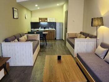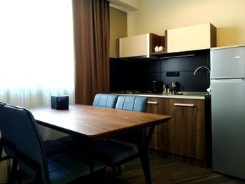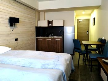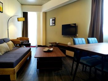 Сервис: молодой человек на ресепшене был крайне не заинтересован, чтобы помочь гостям. Когда мы приехали, в апартаментах не было средства для мытья посуды и губки, спустились спросить, можем ли мы купить хотя бы на ресепшене, на что получили ответ «нет, это апарт отель, что вы хотели». Ближайший магазин пешком по трассе 15 минут в темноте либо такси за 20 лари в одну сторону. Далее этот же молодой человек перепутал дни уборки (бесплатно включена только одна Уборка за 5 дней), по итогу вместо середины периода проживания у нас убрались утром второго дня. Попросили убрать по расписанию, как это было запланировано, покивал головой, но уборки не случилось. Девушка, тем не менее, была милой и пыталась помочь.
