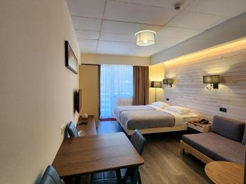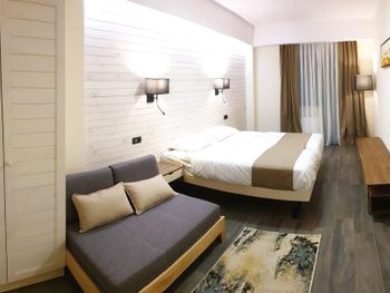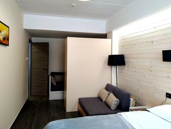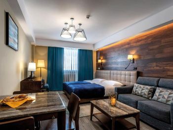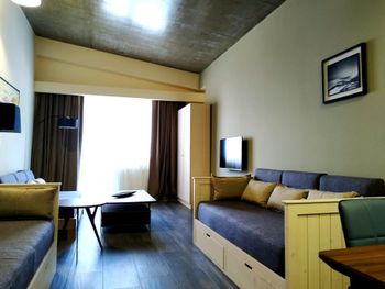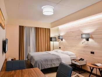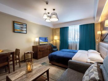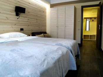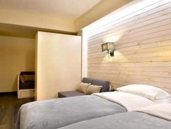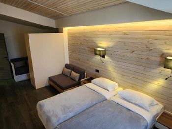 Хорошее размещение, в пешей доступности от подъемника. Просторный номер и красивый вид из окна на горы. Теплый бассейн, джакузи, сауна после дня катания очень расслабляют. Дети тоже в восторге. В соседнем здании лыжный детский сад для детей, поэтому очень удобно.» для людей с детьми.