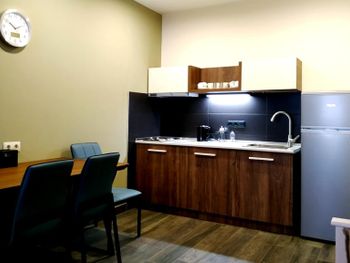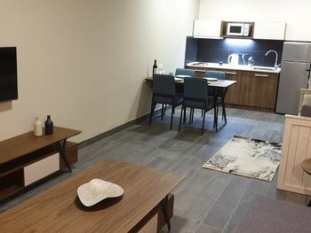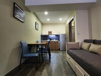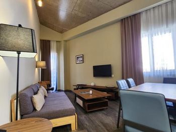 Мы отдыхали в этой гостинице впятером с 02.01.2020 по 07.01.2020. Гостиница открылась только 10 декабря 2019 года, поэтому на картах ее можно не найти. Чистая, свежая, новая. Мы сняли двухкомнатный номер с кухней, санузлом и 5 кроватями. В жизни гостиница полностью идентична фотографиям. В номере все есть: фен, утюг, гладильная доска, чайник , сейф, стиральная машина. Полотенца дают, но не меняют, это дополнительная оплачиваемая опция (50 лари). В номере не убирают, это тоже дополнительная опция (30лари). Убирают мусор только по просьбе. В гостинице можно напрокат взять лыжи/сноуборд, но они изрядно несвежие (мы брали в новом гудаури), и для каждого номера отделяется по одной ячейке для хранения оборудования. Мы брали завтраки. Так как кухня только начинает свою работу, так называемый шведский стол был довольно бедный, но по многочисленным просьбам немного разнообразился во время нашего пребывания. Кофе бывает не всегда, потому что никто кроме бармена готовить его не умеет, а утром его на завтраках нет. Официант Морис отличный и понимающий, другие не совсем. Камин шикарный!!! До лыжного спуска идти 3 минуты, по которому можно спуститься к подъемнику. Подьемники работают с 10 утра до 5 вечера. В округе много строек, так как гудаури застраивается, но в номерах стройки не слышно. Рядом есть приличные рестораны и маленький супермаркет (примерно 1км пешком) со всем самым необходим. Такси недорогое, можно из гостиницы заказать. В целом отдых в гудаури Хиллс апарт отель нам понравился, как молодой гостинице желаем поддерживать свежесть и чистоту, немного улучшить кухню, научиться готовить кофе, десерты и кальяны, ну и появиться в google картах.