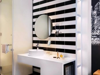 Номер кажется на первый взгляд современным. Но туалет и душевая просто отталкивают! Сейф не работал, тапочек не было вообще, зубной пасты и щток не было вообще, это доставило очень сильный дискомфорт.