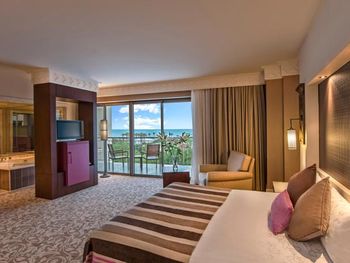 + Качество и разнообразие еды в основном ресторане приятно удивило (рыба, мясо, креветки, ролы). Вкуснее чем в ресторанах La Carta и ресторане, где готовил повар Мишлен (также покупали в отеле).