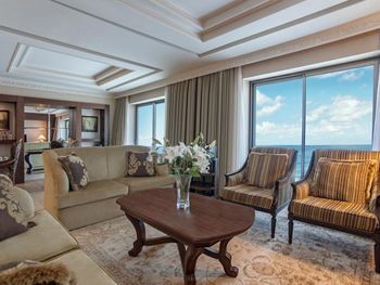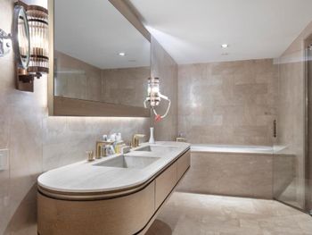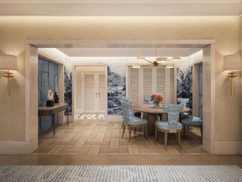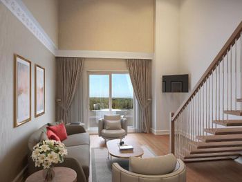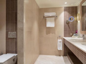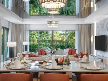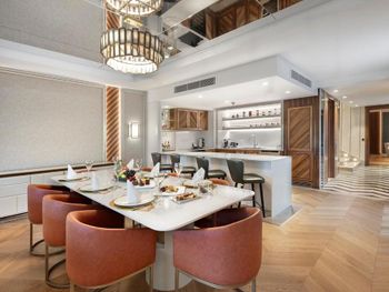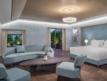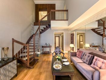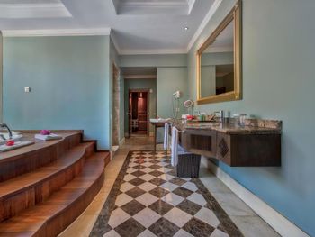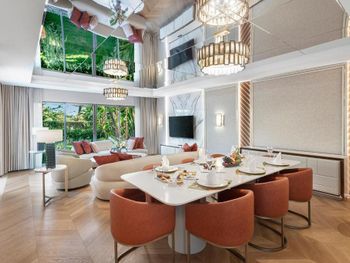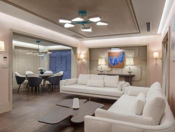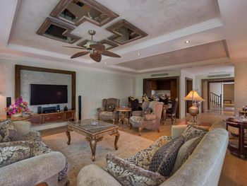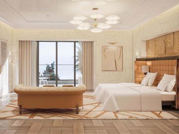 Уставший и грязноватый интерьер, особенно мягкая мебель и ковролин. За 545€ сутки в Лейк Хаусе можно было и Подушки предложить и мебель обновить . Пахнет хлоркой с бассейна, так что спали под кондиционером, который дует прям на кровать с противоположной стороны.