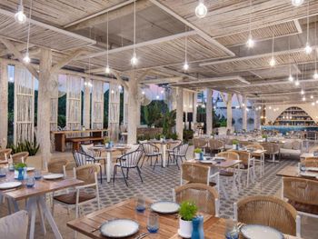 Много ресторанов, все разные (средиземноморский очень понравился). Отдельное спасибо - за отварную кукурузу у бассейна!😀