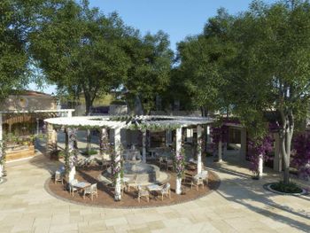 + Оформление и дизайн территории с прогулочными зонами и обилием мест где можно посидеть. Большое количество зелени, декоративный пруд с рыбами.
