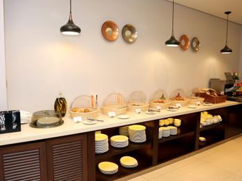 Завтраки - это просто ужас! Настолько скудных я не видела нигде! Мясного просто нет ( один вид исскуственных сосисек и полубелая химическая колбаса). Жили 7 дней - все это время было абсолютно одно и то же. Хоть бы раз омлет сделали - нет. Только вареные яйца и просвечивающаяся яичница.