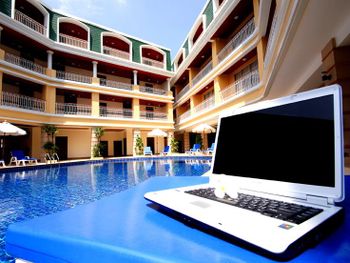 До северной части пляжа патонг 10-15 минут не спеша, рядом с отелем фемилимарт возле которого не плохое кафе. Интернет стабильный быстрый!