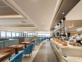 Завтрак отличный с упором в азиатские кухни. Территория красивая и интересная. Прекрасный пляжный клуб. Собственный аквапарк. Даже поющий фонтан. Единственный вопрос - далековато от центра города, поэтому лучше брать какие-то варианты all inclusive, чтобы меньше выезжать из отеля.